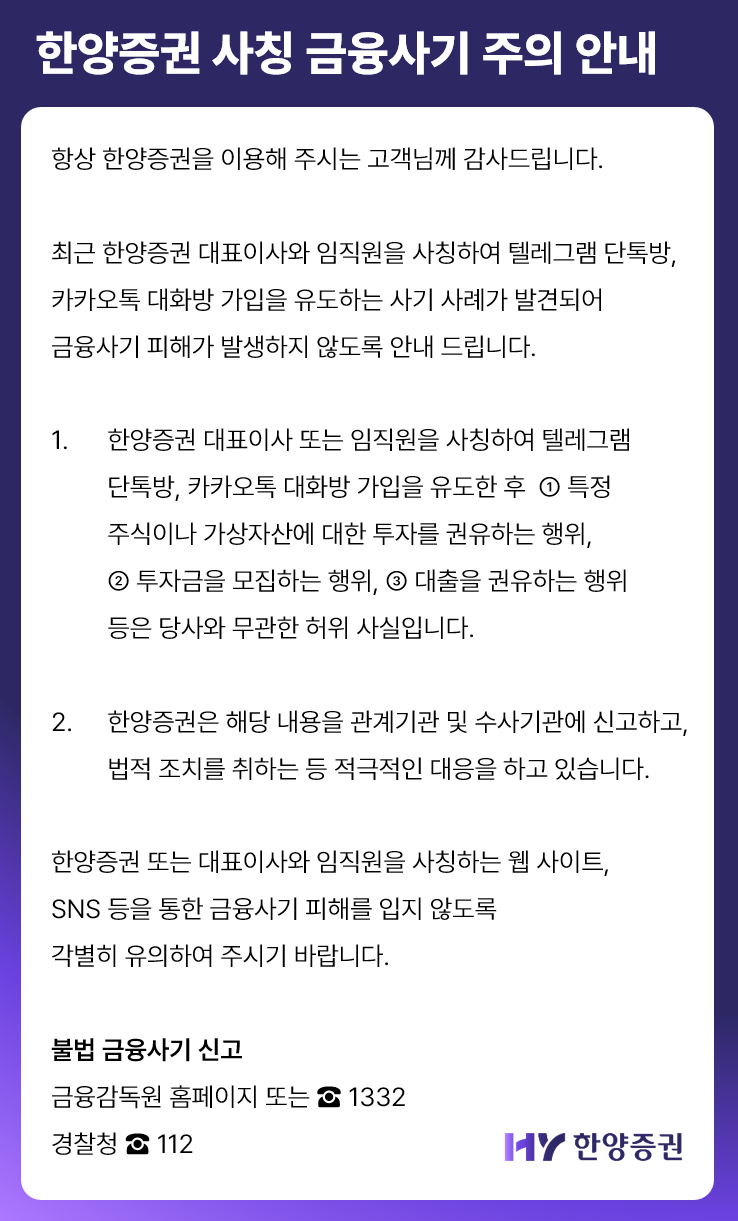 투자정보한양증권이 제공하는 전문적인 투자정보